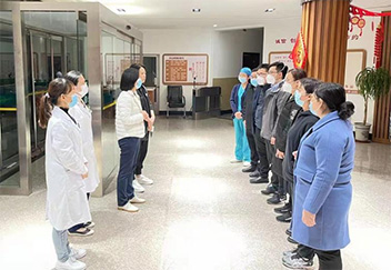 医院党委书记王兆发定期组织召开党委会,听取疫情防控相关工作汇报。医院每日召开防控会议,对重点岗位做部署安排,同时从预检分诊、发热门诊、患者入院、病房管理,到医疗救治、过渡病房、后勤保障、安全保卫、餐饮管理等重点岗位和重点人群精准布防、科学质控,在保障正常医疗救治的前提下,确保患者、陪人、医务人员零感染。