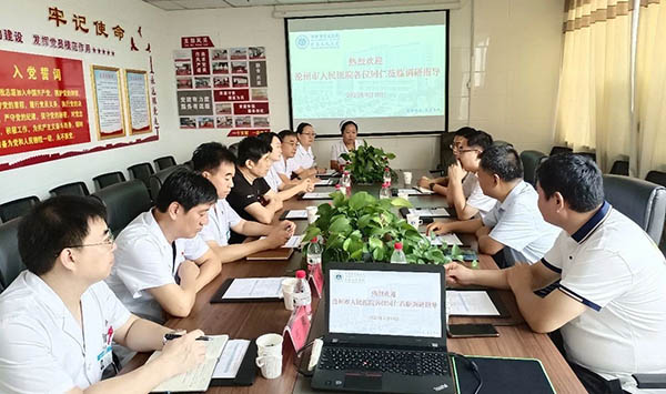 为推进优质医疗资源下沉,全面加强康复医疗服务体系建设,9月10日,沧州市人民医院党委书记滕伟、副院长张志刚等一行4人到沧州市第五医院(青县人民医院),就联手打造康复医联体相关事宜与第五医院领导班子和相关科室负责人深入沟通交流。