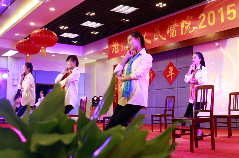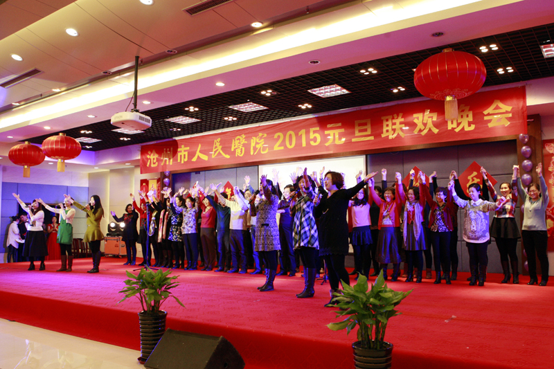 2014年12月31日,沧州市人民医院举办以“亲亲热热一家人,欢欢笑笑迎新春”为主题的迎新年联欢晚会,医护人员用动听的歌声、欢快的舞蹈迎接新年的到来。