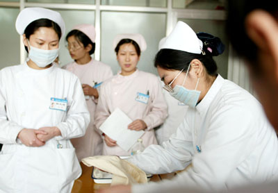 昨天下午,市人民医院300多名护士进行了以护理技能操作为主要内容的考核。据悉,为促进每一名护士业务技能的全面提高,这家医院护理部制定了长期培训计划和制度,将不定期的进行理论、技能考核,从而提升护理队伍综合素质。