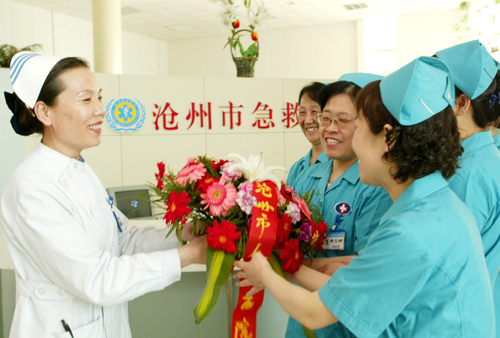 今天是5.12护士节,市人民医院领导将一束束鲜花献给工作在各个岗位的护士们。市人民医院护理部结合医院“讲诚信、树品牌,创建患者满意医院”活动。率先开展了人性化的护理服务模式,病人从入院到痊愈的全部过程都在人性化的关怀中。同时,这家医院400余名护理人员通过开展护理服务演讲比赛,健康咨询等系列活动,增强了他们主动服务意识,提升了病人的满意率。