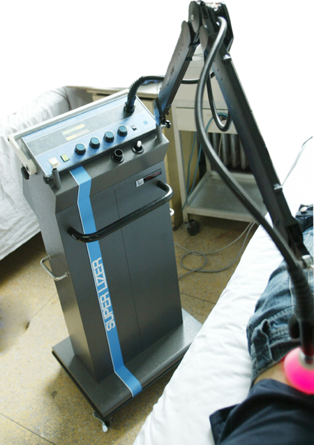 沧州市人民医院颈肩腰腿痛门诊为解除疼痛患者的痛苦,率先引进日本超激光疼痛治疗仪以绿色治疗、标本兼治为研制原则,采用最新光电技术,在600-1600nm的人体透射窗口范围内,光波输出功率最高达2200mw,对人体组织的有效作用深度可达5cm以上。它利用四种探头,通过对人体神经节、神经干、神经根和痛患局部照射,可对人体炎症性、神经性、和创伤性疼痛及功能障碍进行有效的治疗,并整体性地调节机体功能。适用于各种病症的疼痛,如颈椎病、腰椎间盘突出症、骨质增生、肩周炎、腱鞘炎、腰肌劳损,滑囊炎、坐骨神经痛、急性慢性软组织损伤、膝关节增生、神经性头痛、神经衰弱等。该科还拥有中频电疗仪、药物导入骨质增生治疗仪、超短波治疗仪及电脑自动牵引床。我院颈肩腰腿痛门诊在市级医院中独此一家。为疼痛及功能障碍患者恢复健康活力。