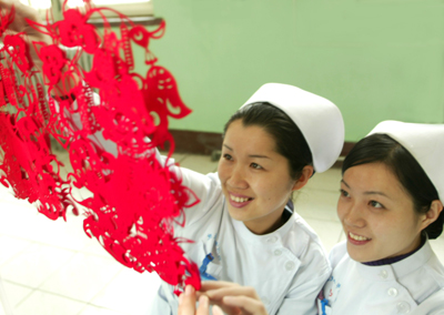 辞旧迎春,欢喜连连。元旦前夕,河北沧州市人民医院的护士们用红灯笼、中国结、千纸鹤和吉祥星等精美的喜庆饰物将各个病区装点的格外温馨,让节日期间留院治疗的病人感受到一种来自家庭般的温暖。同时,她们还把自己亲手制作写有“元旦送祝福,祝您早康复”字样的祝福卡送到病人手里,发自内心的祝福让躺在病榻上的患者感动不已。