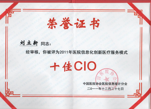 该院在2010年度还获得了CHIMA授予的“数据中心建设十佳医院”称号和CHAITS授予的“信息化创新医疗服务模式十佳医院”称号。