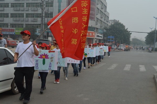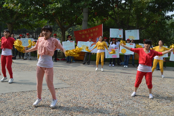 今年9月20日是第25个“全国爱牙日”,在院领导的支持和帮助下,沧州市人民医院口腔分院全体员工集思广益,发动了以“健康口腔,幸福家庭”为主题的9.20爱牙日口腔保健宣传活动。此次宣传活动由研究生团队、护理团队和学生团队三部分组成。由19名研究生组成的研究生团队设计制作个性宣传牌及队旗,以“快闪”的形式穿行于匆忙的人群中,并在人民公园、华北三期广场、南湖公园进行集中展示;护理团队和学生团队进行动感舞蹈、四句半等表演。本次口腔保健宣传活动一改往日义诊、讲座等形式,把口腔保健宣传融入到歌舞、四句半及“快闪”的行为艺术里,其形式新颖独特,吸引了市民纷纷驻足观赏,并赢得了群众的赞誉和好评。