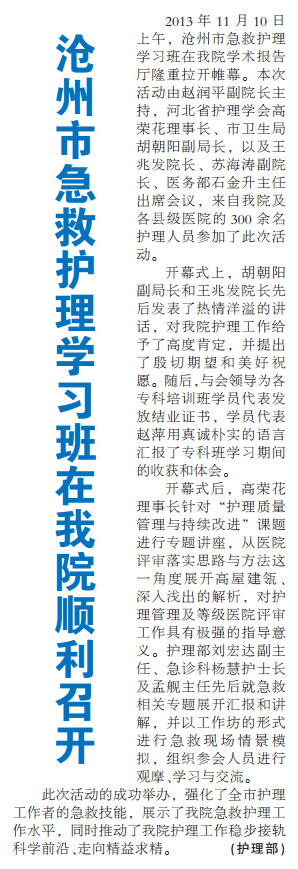 沧州市急救护理学习班在我院顺利召开