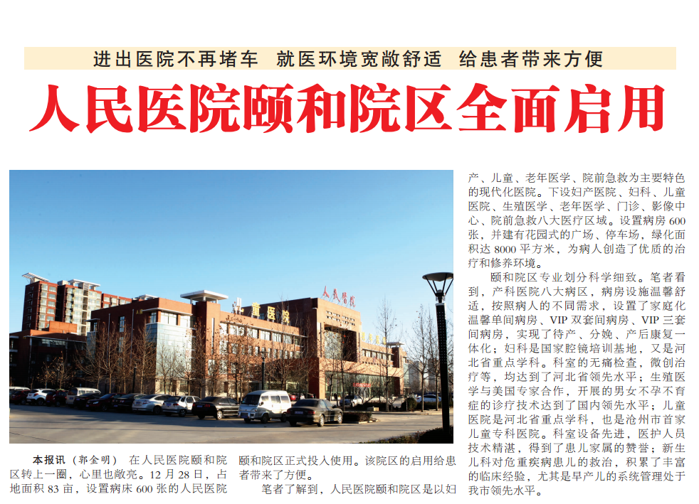 人民医院颐和院区全面启用