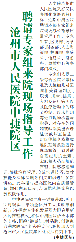 沧州市人民医院中捷院区聘请专家组来院现场指导工作
