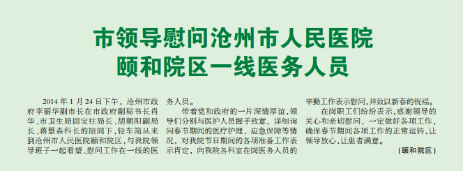 市领导慰问沧州市人民医院颐和院区一线医务人员
