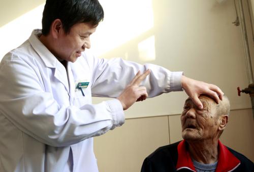 图一,在老年公寓,白内障给邱大爷增添了苦恼。