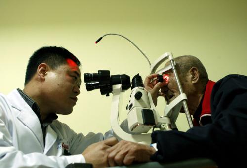 图六,市人民医院为老人进行术前检查。