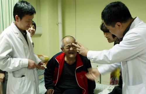 图四,市人民医院的医生来义诊,决定为老人免费进行手术。