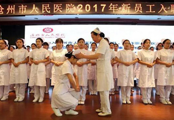 王兆发院长为大会作总结讲话,对125名新入职员工寄予了殷切的期望。王院长说作为一位医护工作者要做到五点,第一、心有多大舞台就有多大,要在自己的舞台上发光发亮;第二、要有协作精神,和团队一起努力并进;第三、要身心健康,作为一名医护工作者没有休息、没有假期、没有退休,要拥有一个健康的身体才能更好的服务百姓;第四、要轻装上阵,要有目标才能走的更远;第五,要坚持,在学医的道路上并不容易,要有坚强的意志和毅力,在这条道路上坚持的走下去。
