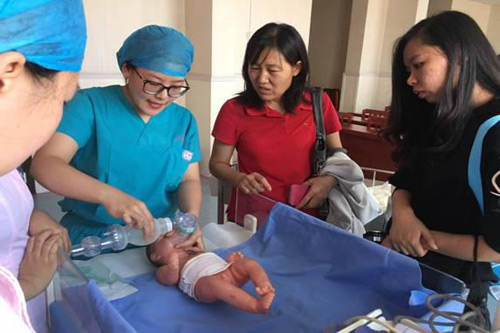 9月30日学术会以工作坊形式对产后出血、子痫、肩难产、新生儿复苏术等产科危重症急救技术进行演练,产院王吉云院长亲自带队示范指导。与会学员参与进行模拟操作,并在期间与演示老师针对临床疑难问题、护理要点进行交流,分享临床经验。