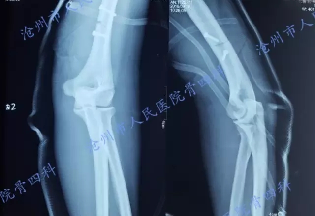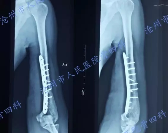 术后复查X光片示:骨折复位及内固定位置良好。
