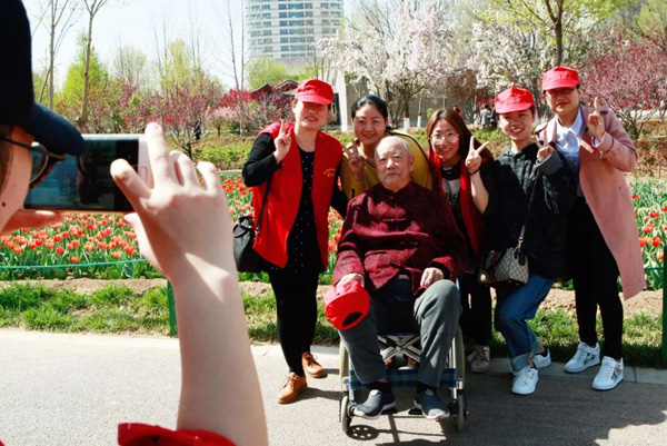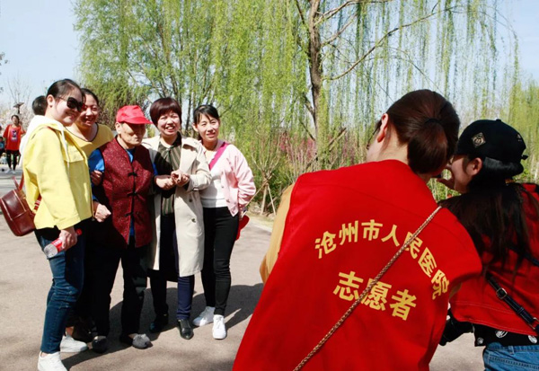 温和的阳光,泻了满城的春色,杨柳依依,桃花灼灼,正是赏花游玩的大好季节。为了丰富老人们的精神文化生活,让老人们感受春天的美好,进一步提升老人们的生活幸福指数。4月11日,沧州市人民医院老年医学科的30名老人在护士志愿者陪同下来到名人植物园游园赏花。