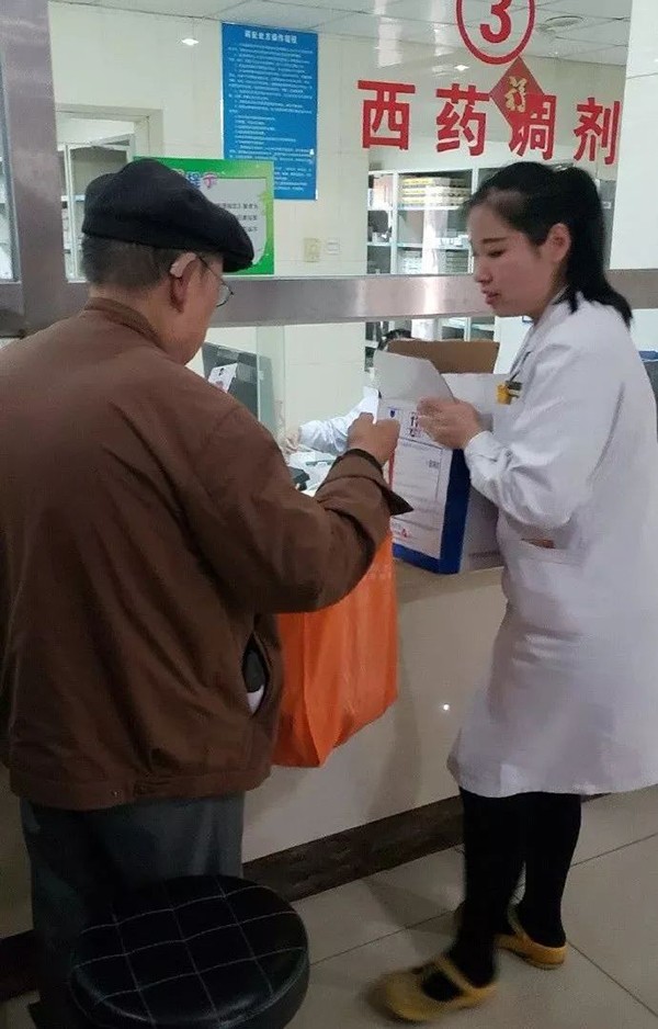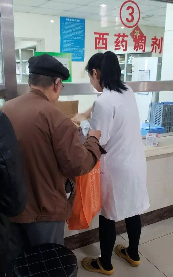 经小编了解,这位年轻医生是西药房的刘美兰药师,她说:“当时也没想那么多,看到老人行动不便就主动帮他拿了药,举手之劳,没想到能受到这么多人关注。”