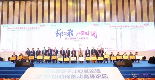 11月10日,由中国心血管健康联盟、中国房颤中心总部、湖北省房颤中心等主办的第九届扬子江心脏论坛暨2018心房颤动高峰论坛在武汉国际会议中心隆重召开。现场为118家全国第一批房颤中心认证单位授牌。沧州市人民医院作为全国首批中国房颤中心认证通过单位名列其中,也是我市唯一入围的医院。市人民医院张彦龙副院长、心血管内科胡亚力主任参加了授牌仪式。
