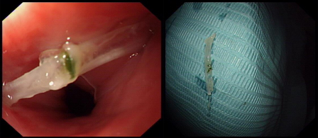张金宝主任简单扼要的询问了老人的基本情况和发病过程,“吸氧、安装心电和氧饱和监护!”张金宝主任协助患者平卧在治疗床上后利落地带上手套,操控着胃镜准备进入食道夹取异物。看似粗长的胃镜在张主任的操作下灵巧地运动着,过会厌,进食管,发现一根1公分多的鱼刺卡食管上段,由于老人家属之前各种不科学的方法,鱼刺已经刺入食管壁内,张金宝主任迅速由内镜进入异物钳,灵巧的反复拨弄,将鱼刺完整的取了出来。之后在内镜下仔细观察了并确认伤口没有明显出血和穿孔后,小心轻柔地退出内镜。