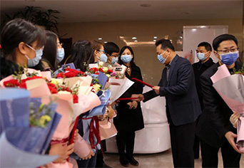 2月29日上午,随着最后一次体温等检测全部正常,沧州市人民医院又有一批进入隔离病房的“逆行英雄”平安结束了医学观察期,他们是——魏晓华、刘新花、李孟玲、徐菁慧、贺丽君、张明月、胡亚改、杨丹丹、孔垂星、何倩、王丹萍、刘泽鹏、王浩。王兆发书记为他们献上了鲜花并颁发荣誉证书。