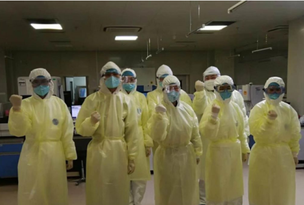 他们每天要穿上厚厚的防护装备,奔向战场,为了节省防护用具,他们不敢喝水,一个班次下来每个人都是一身汗,很多人的脸上都被磨破了皮、出现过敏等情况;由于实验室要实时消毒,他们还要面对大量含氯消毒剂和紫外线,有些人出现了头痛、白细胞低,角膜炎等症状,但在抗“疫”这条布满荆棘的道路上,他们义无反顾,不退让!