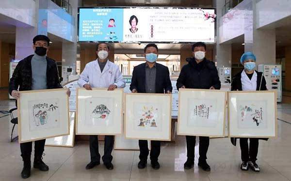 新型冠状病毒肺炎疫情爆发以来一直牵动着全国人民的心,也牵动着沧州书画界艺术家们的心。2月18日上午,潘小白先生、石磊先生代表沧州文化研究会与沧州美术馆为沧州市人民医院医务人员送来了凝聚着艺术家们智慧与艺术之美的10幅以“抗疫”为主题的漫画作品,向奋不顾身工作在第一线的“白衣战士”致敬,送上爱与祝福,祝愿疫情早日结束!