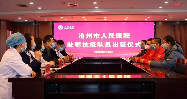 2月18日上午,“沧州市人民医院赴鄂抗疫队员出征仪式”在人民医院医专院区举行。马艳彪、刘金柱、张宏君3名医务人员将作为河北省第七批医疗队成员驰援湖北。