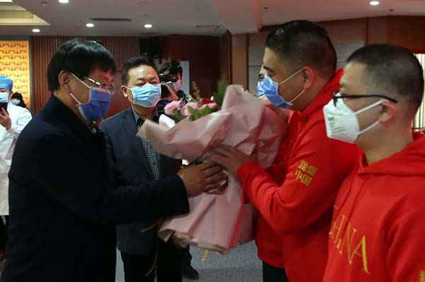 王兆发书记、吕增禄院长为“逆行英雄”献上鲜花并送行