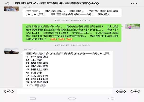 目前,全国已全面进入疫情防控的战斗状态,沧州市人民医院先后派出近50名医护人员“进驻”隔离病房,医院党委为保证抗疫一线医务人员力量充足,为打赢这场疫情防控阻击战提供有力保障,向全院党员干部再次发出动员令:疫情就是命令,防控就是责任。动员令一经发出,干部职工纷纷响应,主动请缨……