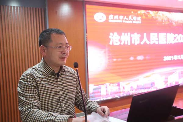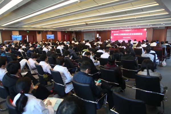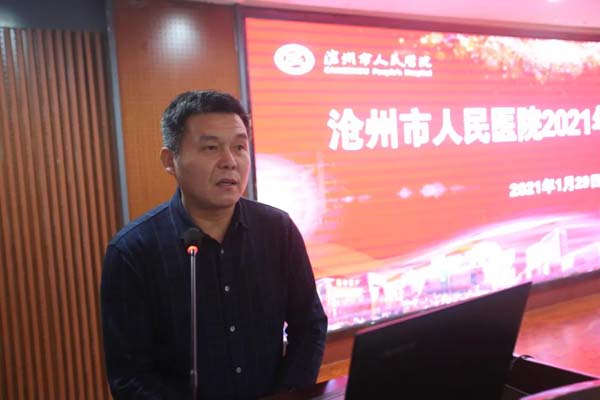 吕增禄院长在讲话中指出,2020年是不平凡的一年,全院干部职工团结拼搏,克服新冠肺炎疫情的不利因素,成为了省级现代医院管理制度建设样板医院,通过了三甲复审,创建成为国家住院医师规范化培训基地,省级文明单位,作为新冠肺炎确诊患者定点收治医院圆满完成了紧张、繁重的医疗救治任务,确立规划了医院东部院区建设项目等突出成绩,使医院声誉和形象进一步提高。2021年是我国建党100周年和我院建院60周年;是医院继续贯彻落实党委领导并不断完善现代医院管理制度,强化运营管理向实现高质量、可持续发展加快转型的一年;也是医院下一个五年规划的开局之年。对此,吕增禄院长提出三点要求:一、疫情防控常态下,我们也要实现学科和医院发展;二、强化运营管理,推进学科和医院高质量发展;三、坚定信心,真抓实干,努力完成全年工作任务。