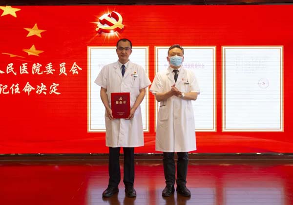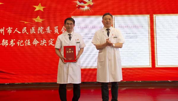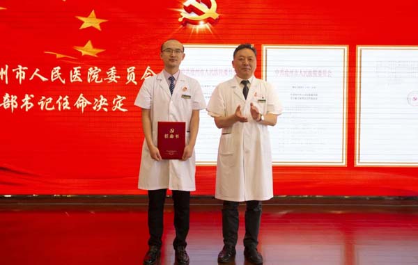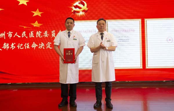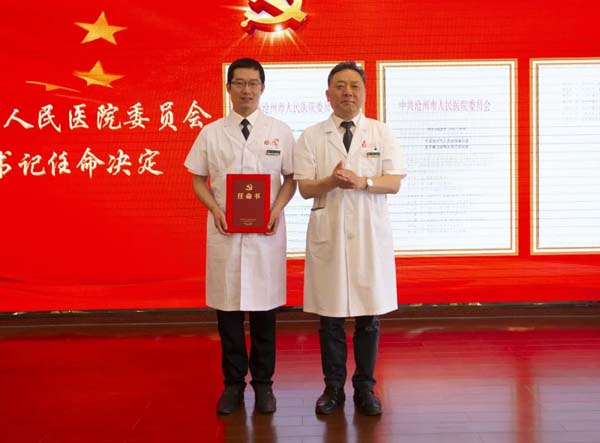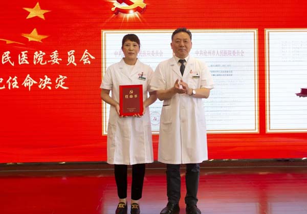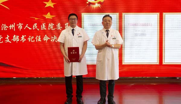 会上,院长、党委副书记吕增禄宣读了《中共沧州市人民医院委员会关于杨卫国等人的任命决定》;党委书记王兆发为新任支部书记颁发任命书;肝胆胰微创外科主任兰涛代表新任支部书记作表态发言;党群部刘宏达主任带领新任书记重温入党宣誓;纪检书记朱庆荣,党委副书记、副院长黄捷分别作题为《加强党政干部作风廉政建设》《创新管理助推医院学科发展》的岗前培训;党委书记王兆发作总结讲话。
