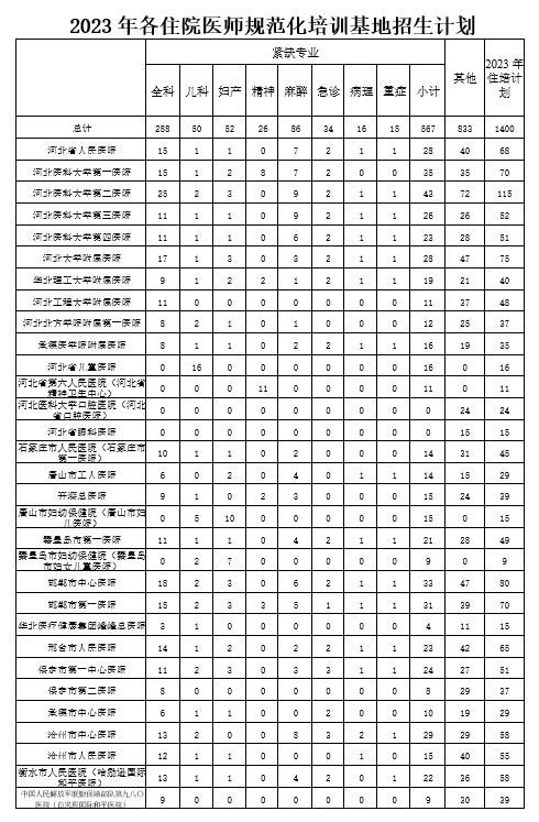 已在河北省工作的医师报名参加2023年住院医师规范化培训各市、县联系人名单
