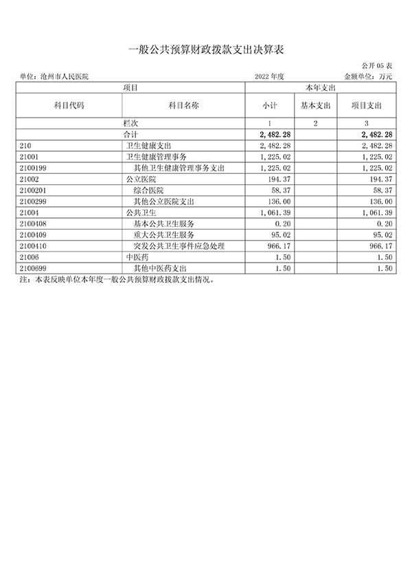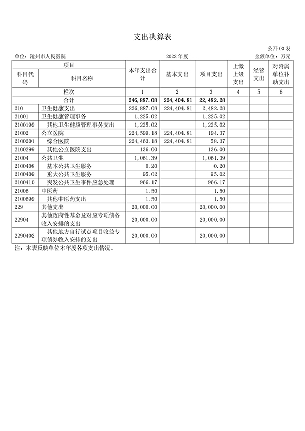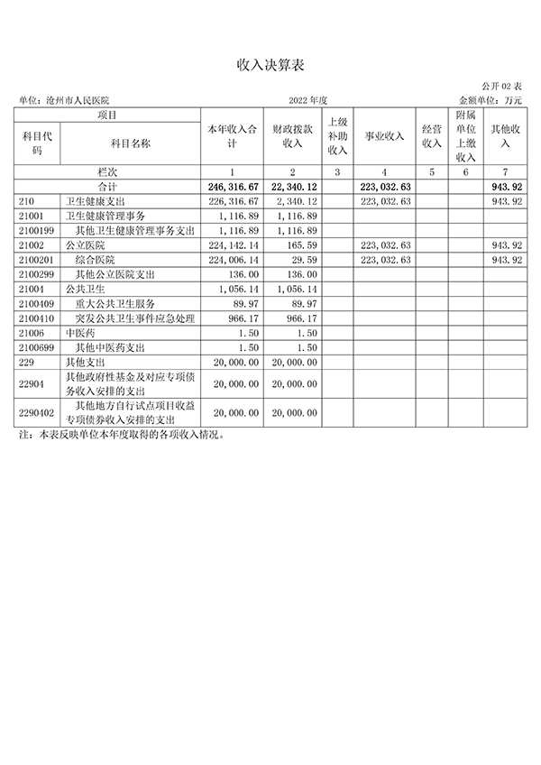 沧州市人民医院2022年度单位决算公开文本