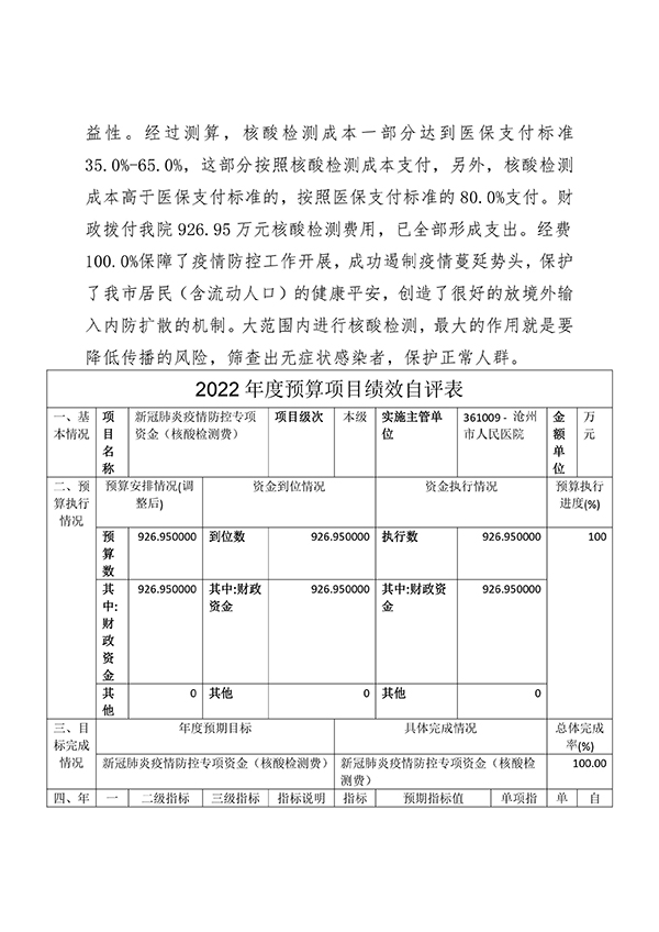 附件:沧州市人民医院2022年度单位决算公开文本(电子版)(终版)