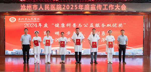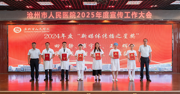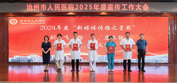 大会在庄重而热烈的氛围中拉开帷幕。医院党委副书记、院长黄捷主持会议并宣读《中共沧州市人民医院委员会关于表彰“2024年度宣传工作‘先进集体’和‘先进个人’”的决定》。为树立标杆、表彰先进,充分发挥模范引领作用,进一步激发全院宣传工作者的积极性与创造性,医院党委经研究决定,在本年度宣传工作大会召开之际,对在2024年度医院宣传工作中表现突出团队及个人予以表彰,授予护理科普项目组、人医产科团队、中医门诊部“品牌传播卓越团队奖”,授予骨病中心党总支刘宣毅等11人“新媒体传播之星奖”、授予肿瘤院区内分泌代谢科刘建凤等12人“健康科普与公益服务双优奖”。这些荣誉不仅是对过去成绩的肯定,更是对未来奋进的期许,激励着全院职工积极投身医院宣传工作,将宣传与业务紧密结合;随后,副院长刘川作医院宣传工作报告,系统梳理过往成果,精准锚定未来航向,为医院宣传工作绘制清晰战略蓝图;在经验分享环节,产科闫芳主任、泌尿外科三区(男科)胡月鹏主任作为个人及团队获奖代表围绕新媒体运营“破圈技巧”、健康科普“吸睛秘籍”、团队协作“高效之道”倾囊相授,以实战经验助力医院宣传工作再上新台阶。