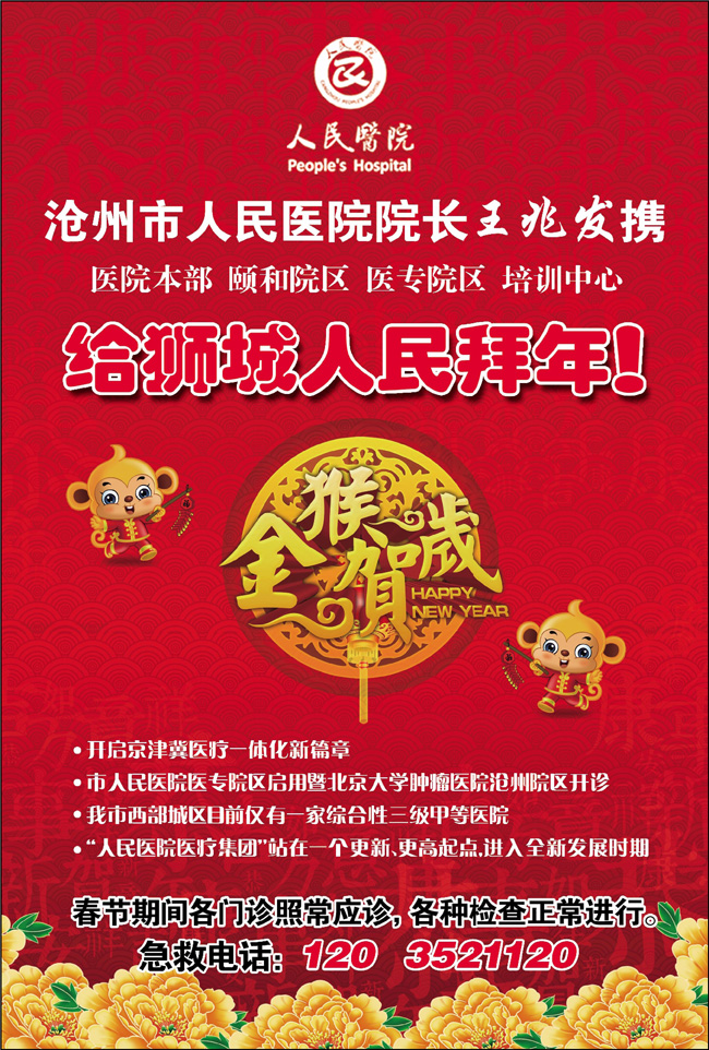 沧州市人民医院院长王兆发携医院本部、颐和院区、 医专院区、培训中心给狮城人民拜年!