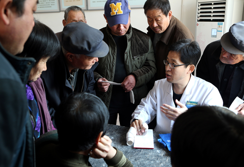 当天上午9点半,市人民医院医疗队的车辆还未停稳,大夫们就换上白大褂,拎上听诊器,抬上检查仪器,立即投入到工作中。笔者看到,不到10分钟的工夫,市人民医院神经内科的于文武大夫已经被村民围得水泄不通。