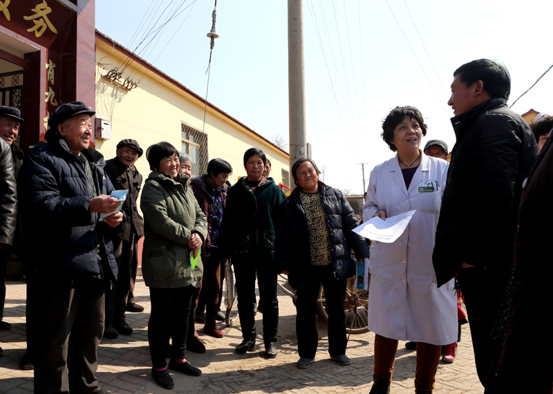 “听说村里今天要来义诊的了,快走,咱早点去查查身体!”一大早,南皮肖九拨村的大街小巷,坡上坡下,三五成群,或牵或扶结伴向村委会大院聚拢着。“村民们,请大家抓紧时间,赶快到村委会大院,沧州市人民医院的大夫们马上就要到咱村了”。村委会广播室的高音喇叭,一遍又一遍不厌其烦地提醒着、催促着。村委会活动室内一字型的桌椅,整齐有序排放着。此时的村委会几个办公室被改建成了临时的检查室,一切准备工作就绪,就等大夫的到来了。