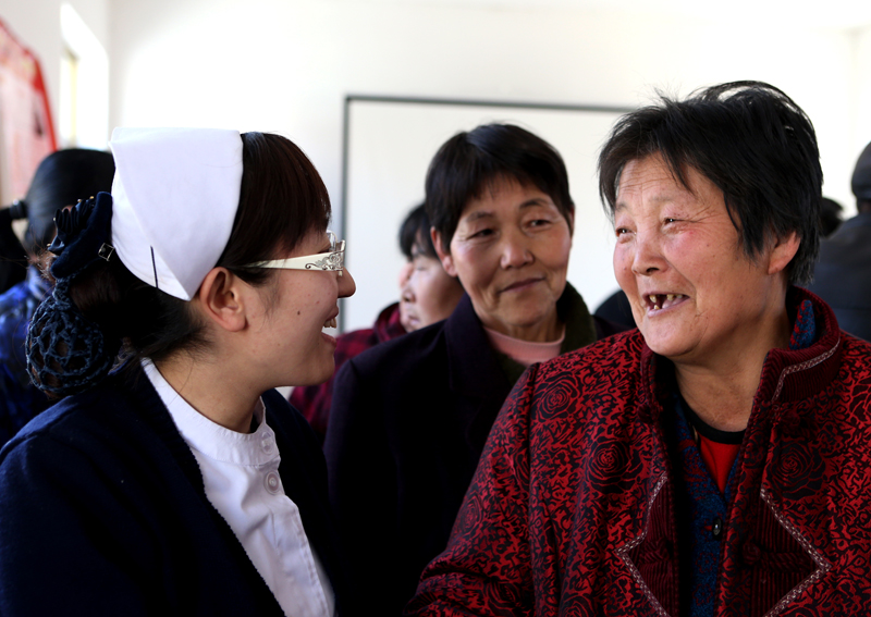 图6,“你们来俺们村免费看病,乡亲们可乐了”,村民于大妈高兴地说。