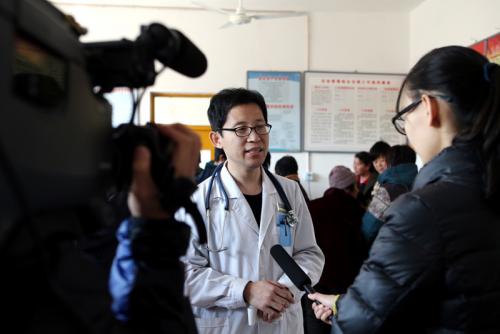 图7,闻讯沧州大医院医生来免费为村民义诊的消息,当地媒体也赶来采访。