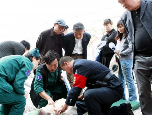 日前,沧州市人民医院举行自救互救科普宣传活动,医生向群众讲解“白金十分钟”急救理念,现场传授实用急救技术。“急救白金十分钟”活动,是由全国医疗志愿者创立发起,至今已举办五届。本届活动的主题是“做自己的急救医师”,旨在宣传和扩大自救互救的社会影响,提高群众自救互就率。
