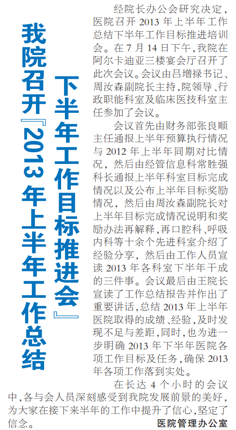 我院召开『2013年上半年工作总结 下半年工作目标推进会』