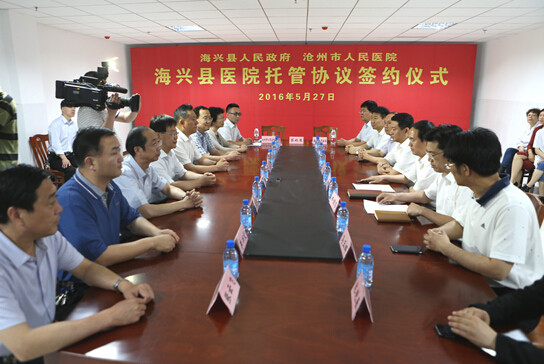 为更好地适应国家新医改形势的需要、落实精准扶贫的国家政策。进一步缓解海兴县及周边地区30余万群众看病难、看病贵问题,27日上午,海兴县委、县政府领导班子与沧州市人民医院领导班子正式签署海兴县人民医院托管协议,将海兴县人民医院运营管理权委托沧州市人民医院管理。