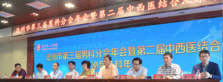 由沧州市医学会主办、沧州市人民医院承办的“沧州市第三届男科分会年会暨第二届中西医结合泌尿外科年会”24日在我院本部学术报告厅隆重举行!河北省医学会泌尿外科学分会主任委员黎玮教授、河北省医学会男科学分会主任委员杨书文教授、河北省抗癌协会泌尿男生殖系肿瘤专业委员会主任委员张爱莉教授、河北省中西医结合泌尿外科学会主任委员李文平教授、河北医大二院泌尿外科刘凯隆教授参加了会议。本次学术会泌尿专家齐聚沧州,规模空前,可谓是一场学术盛宴,会议由人民医院泌尿外科史庆路主任主持,我院王荣副院长到会并致辞。